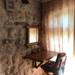 Prizemni sprat sa terasom ukupno 90m2. Ambijent rekonstruisan u toplom rustičnom stilu planiran za porodični odmor. El. podno grijanje u svim prostorijama, kamin sa 2 lica (dnevni boravak/soba) na bioetanol.