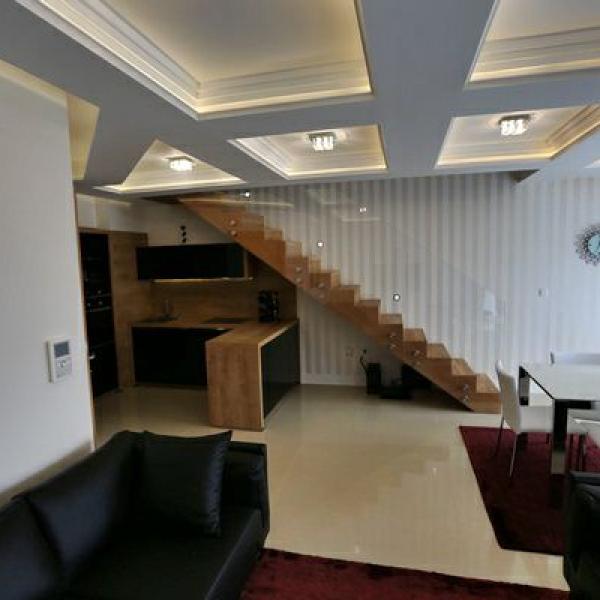 Duplex. Nov i neuseljavan. 2 spavace sobe (en-suite). 3 kupatila. 2 terase. Stan je sa podnim grejanjem, kompletno je luksuzno namesten i opremljen do najsitnijih detalja: Calligaris, Armani Casa, Alberta, Phillip Selva, Miotto, Tisca, ItalLamp, De Majo, Porcelanosa, Villeroy