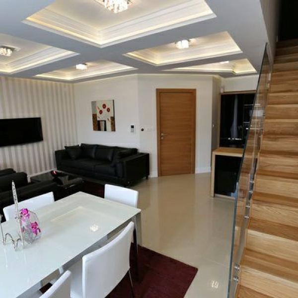 Duplex. Nov i neuseljavan. 2 spavace sobe (en-suite). 3 kupatila. 2 terase. Stan je sa podnim grejanjem, kompletno je luksuzno namesten i opremljen do najsitnijih detalja: Calligaris, Armani Casa, Alberta, Phillip Selva, Miotto, Tisca, ItalLamp, De Majo, Porcelanosa, Villeroy