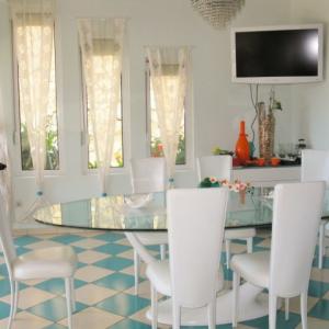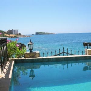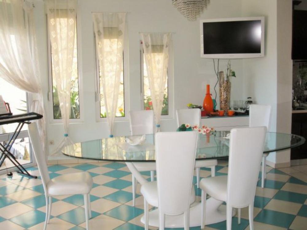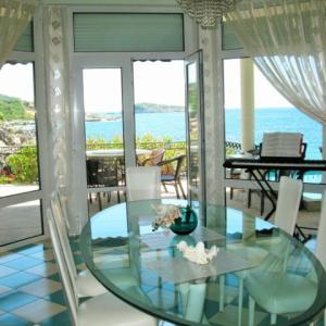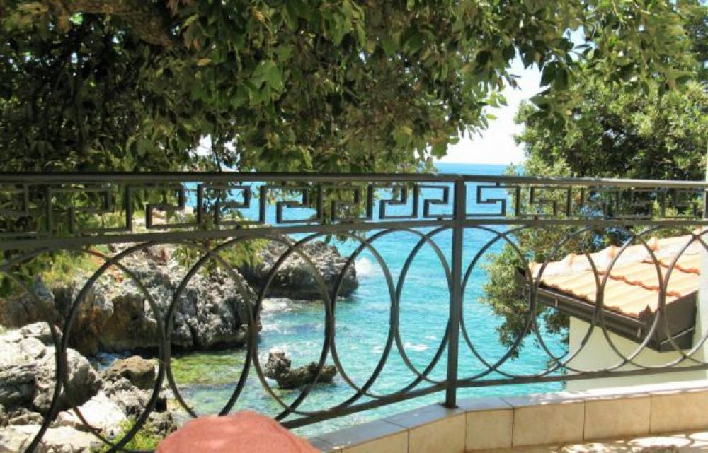 На самом берегу Адриатического моря в местечке Утеха в 8 км. от г. Бар построена вилла общей площадью 497 м2. Край террасы первого этажа находится в 10 метрах от воды и в 25 метрах от небольшого галечного пляжа, к которому ведет удобный спуск. Территория обнесена высокой каменной оградой с кованым обрамлением, что создает ощущение приватности и уюта в маленьком садике с пальмами, мандариновым и лимонным деревьями, а также кумкуатом. Вилла состоит из двух частей - основного хозяйского здания, и части для работников (или гостей) с отдельным входом, где располагается однокомнатный апартамент со своей кухней, душевой, балконом и благоустроенной мансардой. Вход в большой дом начинается с широкой каменной лестницы, ведущей на крыльцо, обрамленное колоннами. Массивная двустворчатая входная дверь отделана деревом по металлической основе. Все деревянные изделия сделаны и привезены по заказу из Испании. На первом этаже почти весь объем помещений воспринимается как единое целое и в то же время понятно функционально распределен. Это каминный зал с большим открытым камином, отделанным мрамором и гранитом, бело-зеленая столовая с овальным стеклянным столом, и большая кухня с островом, полностью оборудованная техникой для кулинарных упражнений. Белая столовая одной стеной (из стекла) полностью сообщается с террасой первого этажа, где стоит большой круглый стол, и где в теплое время зимой и все время летом, под шум прибоя, можно приятно провести время с друзьями и семьей. Там же, в уютном уголке, расположен мягкий диван. Почти вся терраса первого этажа прикрыта от солнца и дождя козырьком террасы второго этажа, опирающимся на белые колонны. Небольшой бассейн с пресной водой тут же, между колоннами. Подводная подсветка создает неповторимый эффект в вечернее время. На первом этаже так же есть телевизионная комната, с видео и аудиосистемой, угловым диваном, и панорамными окнами от пола до потолка, с видом на море и садик. Рядом располагается гостевой санузел с душем, отделанный неполированным гранитом, с хрустальными светильниками. На второй этаж ведет полукруглая винтовая лестница. Здесь располагается хозяйская спальня с застекленной стеной и выходом на террасу над морем. У этой спальни персональный санузел, отделанный травертином (вид мрамора). Также из холла двери ведут во вторую спальню, кабинет и санузел с душевой. Все обставлено основательной итальянской мебелью, качественной и удобной. В кабинете стоит диван, который, в случае необходимости, можно разложить, и устроить спальное место для задержавшихся гостей. Если нет необходимости в обслуживающем персонале или охране, то можно объединить весь дом в один присоединив апартамент обслуги (охраны) по плоскости второго этажа. Тогда второй этаж будет состоять из трех спален, кабинета (еще спальни), двух террас и трех санузлов. Третий этаж. Пройдя по той же лестнице наверх Вы попадаете в просторный зал. Здесь стоит 12 футовый бильярдный стол для игры в снукер. Он привезен из Германии по специальному заказу и смонтирован мастером с учетом всех тонкостей этой аристократической игры. Сбоку находится столик с зеленым сукном для карточных игр или пасьянса. Огромное помещение – практически оранжерея под полукруглой крышей, с колоннами, отделанными серым мрамором. Стеклянные двери ведут на открытую, 