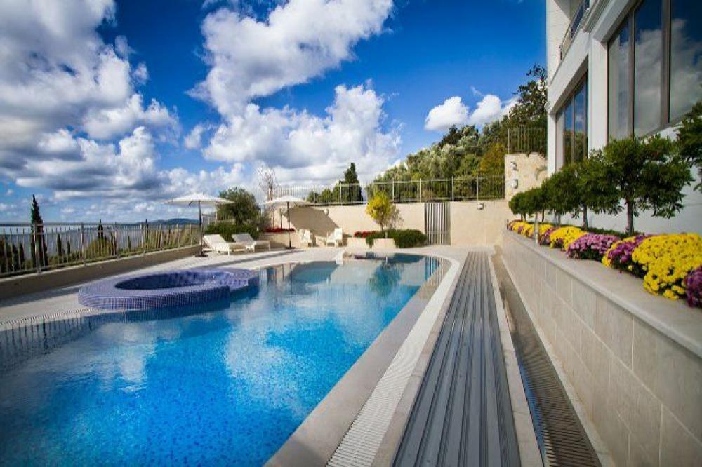 Вилла расположена в тихом уголке Режевичи, вдалеке от суеты и активной жизни. Поселок находится в 4 км от Свети Стефана, до ближайших городов - Петровца и Будвы - всего 5 и 12 км соответственно. В окружении природных красот в непосредственной близости от виллы раскинулся один из самых чистых и красивых пляжей Черногории Уникальное расположение виллы вдали от шума и туристов и в непосредственной близости всех коммуникаций, природных и исторических достопримечательностей.Бассейн объемом 80 куб. м. с раздвижным механизмом, тепловой станцией и системой фильтрации и дезинфекции воды.Фундамент и сама конструкция дома спроектированы и выполнены с расчетом сейсмичности более 8 баллов.На участке высажены более 600 деревьев и кустарников, среди которых есть и плодоносящие деревья, и редкие виды многолетних пальм, и оливки.Приточная вентиляция, осушители воздуха, климат-контроль, теплый пол, солнечные батареи и система