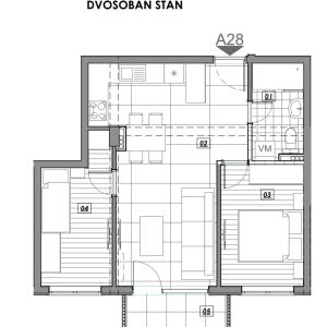 Projekat je u fazi izrade. Garsonjere, jednosobni i dvosobni stanovi.
